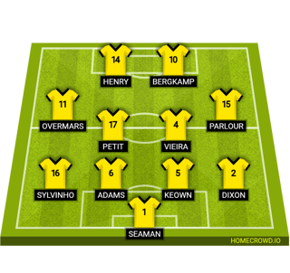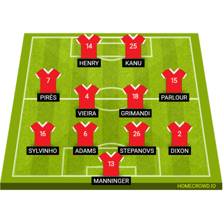 Arsenal’s 03/04 “Invincibles” tore through the Prem꞉ 26 wins, 12 draws, zero losses. Henry fired 39 in 51, Vieira ruled midfield, Bergkamp & Pires brought the magic. Cups slipped away, but the golden trophy and 49-game unbeaten run made them immortal. Wenger’s red & white army at the legendary Highbury. #Arsenal #Invincibles #Legends #TeamSheet #Lineup11