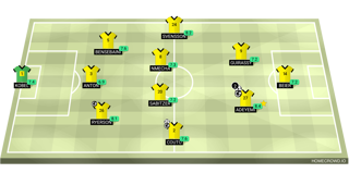 Borussia Dortmund 2025 gegen Barcelona. UCL Champions League. Aufstellung Kobel - Ryerson, Anton, Can, Bensebaini - F. Nmecha, Brandt, Chukwuemeka, Gittens, Adeyemi - Guirassy. #Editor #Fussball #Aufstellung. BVB 2025. #Lineup11 #StartingXI
